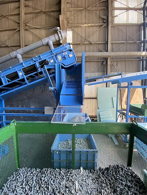 当施設では廃プラスチックや紙くず、木くずを原料にして『RPF(アール・ピー・エフ)と呼ばれる固形燃料を製造しています。
